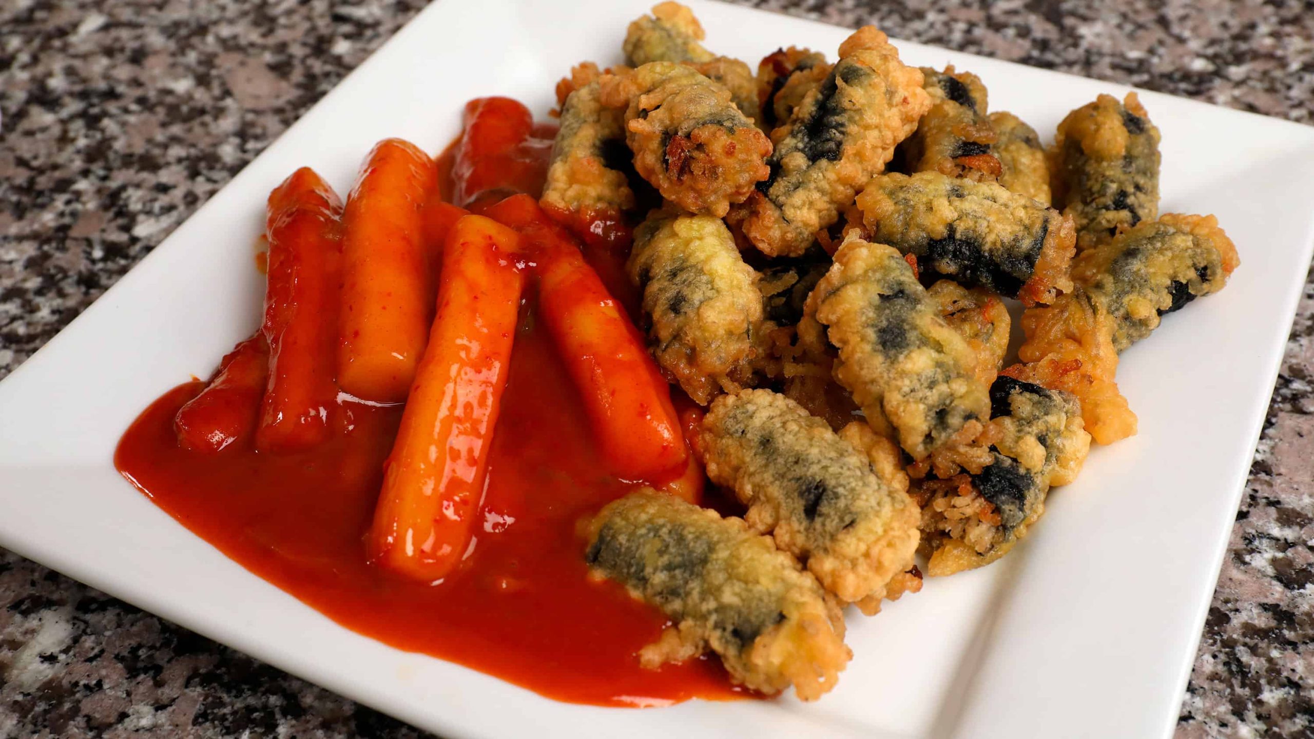 A defining feature of gimmari is how it is eaten. Many people dip it directly into spicy tteokbokki sauce, allowing the crisp exterior to soak up the rich, gochujang-based flavors. This combination of crunchy fried rolls and fiery rice cake sauce has become iconic, offering a perfect balance between heat and texture.